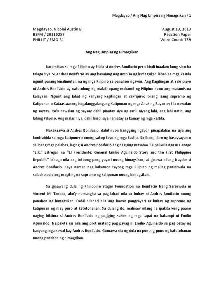 � Sample reaction paper of a movie. Sample Reaction Paper. 20190302