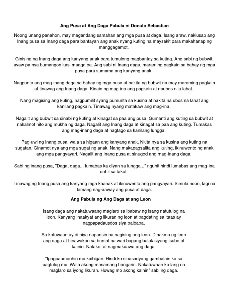 Ang Pusa at Ang Daga Pabula Ni Donato Sebastian