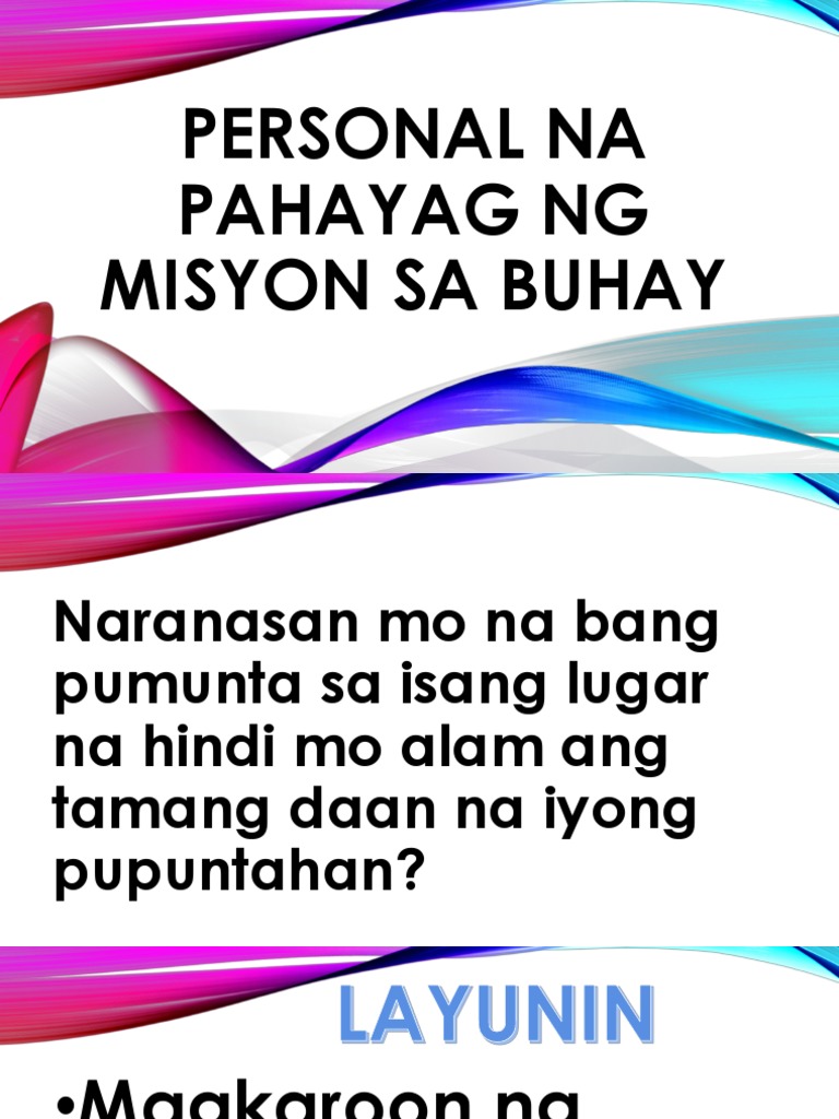 Ang aking layunin o misyon sa buhay. Isang magandang paraan ito upang higitmong makilala ang.